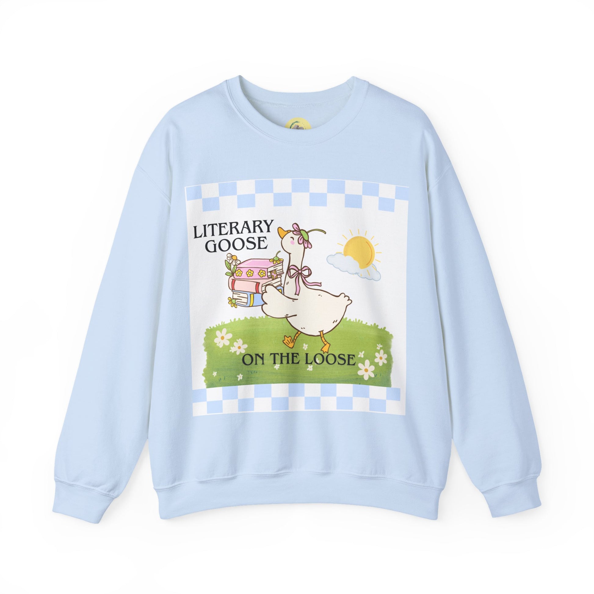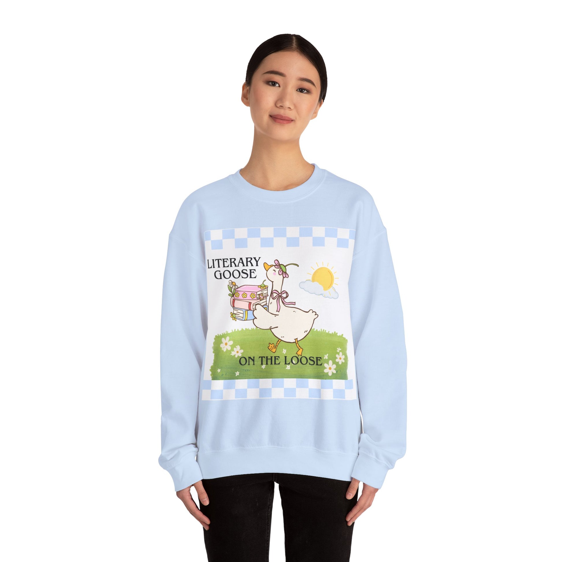 Embrace the cozy vibe with this Literary Goose on the Loose Sweatshirt, perfect for book lovers and casual wear. This sweatshirt is ideal for those colder months, providing comfort and style with its classic fit and crew neckline. The embroidery decoration adds a touch of uniqueness, making it a great gift for bookworms and literature enthusiasts. Suitable for adults, this sweatshirt is a must-have for holiday gifting or everyday wear.